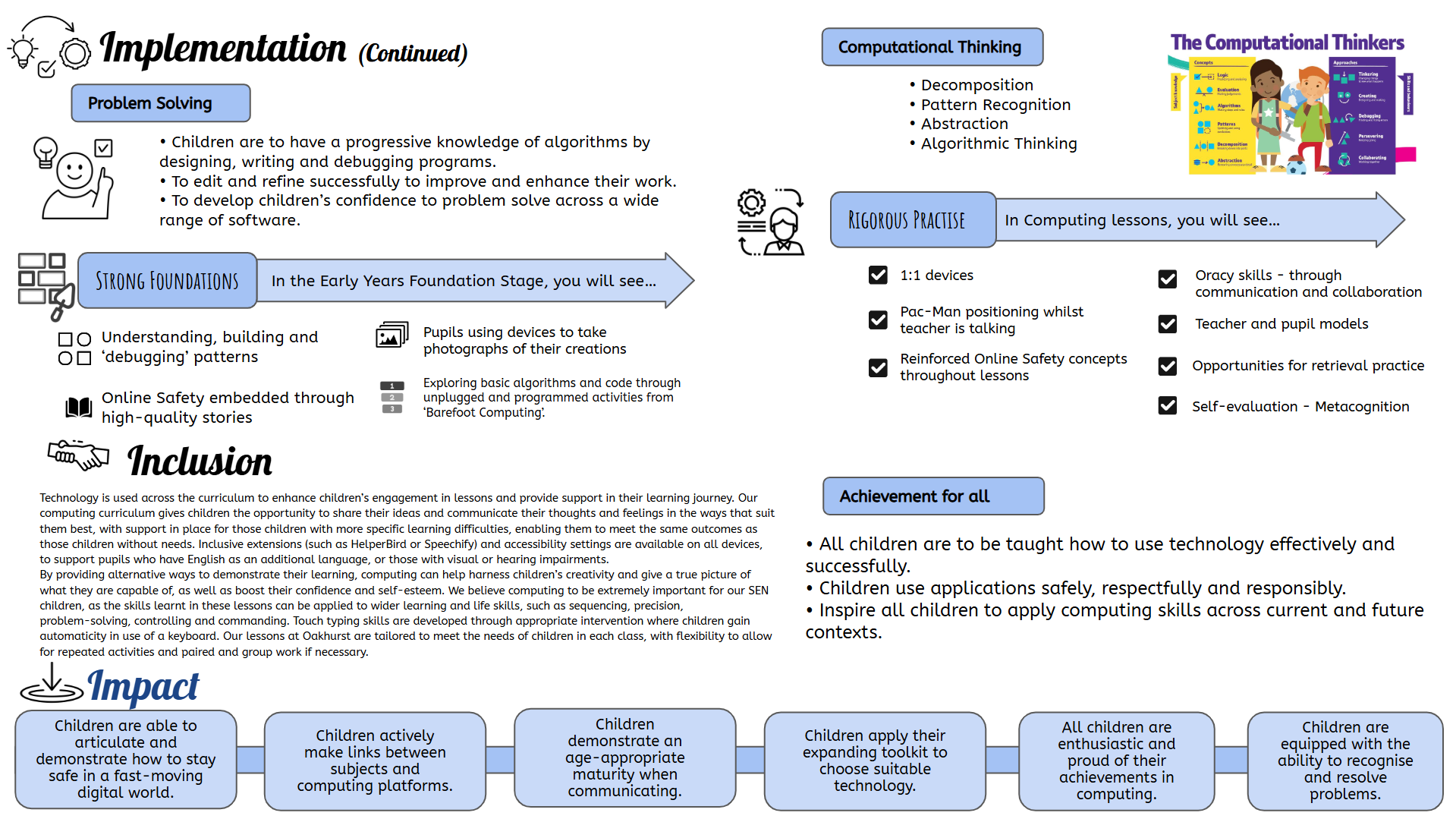At Oakhurst Community Primary School, we always aim to be as inclusive as possible. To that end, parents and carers will find easily digestible documents that provide more detail about the individual subjects that compose our curriculum offer.