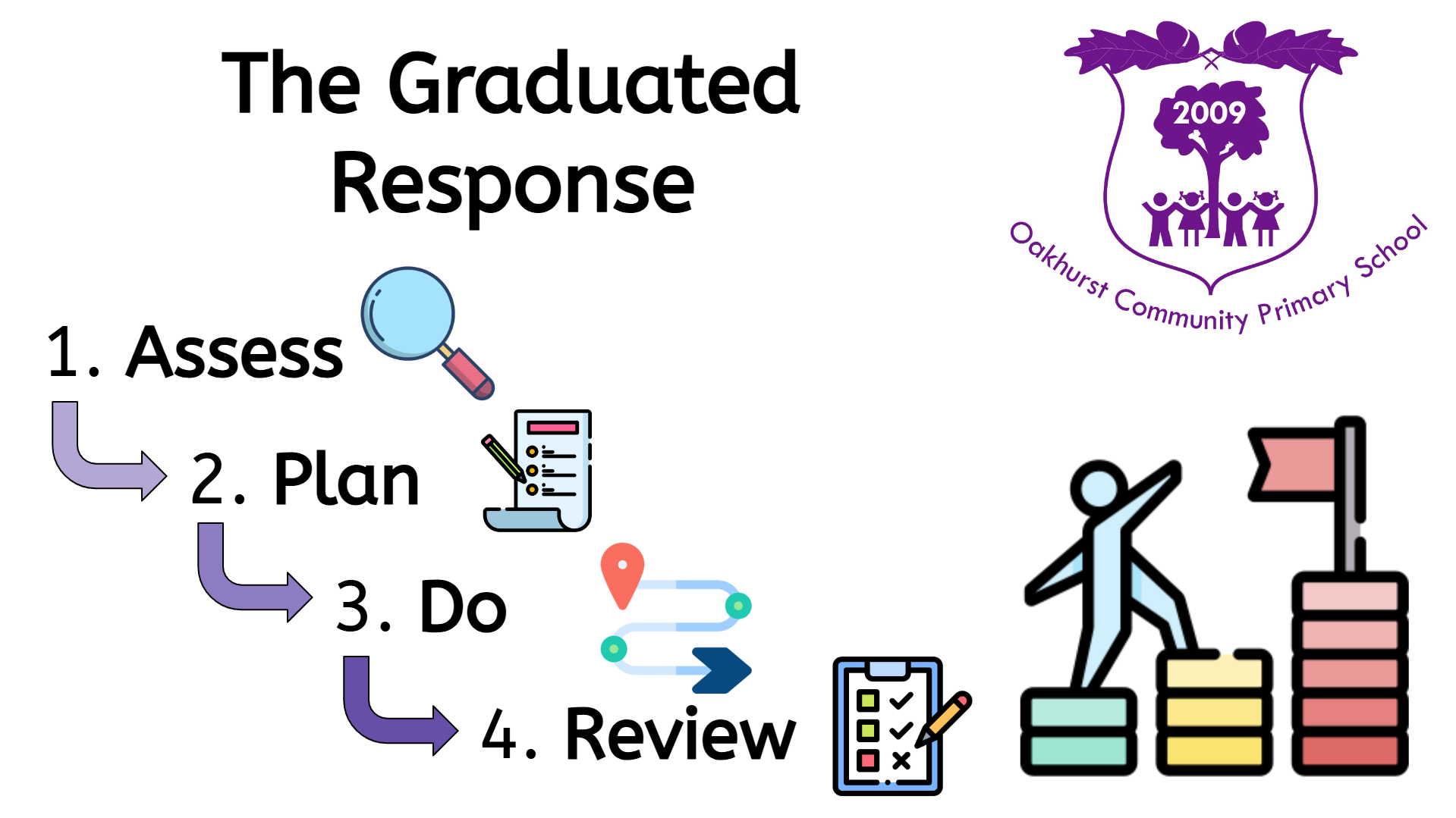 When engaging with individual pupils and exploring their unique needs and barriers to learning, we adopt what we refer to as a ‘Graduated Response’: