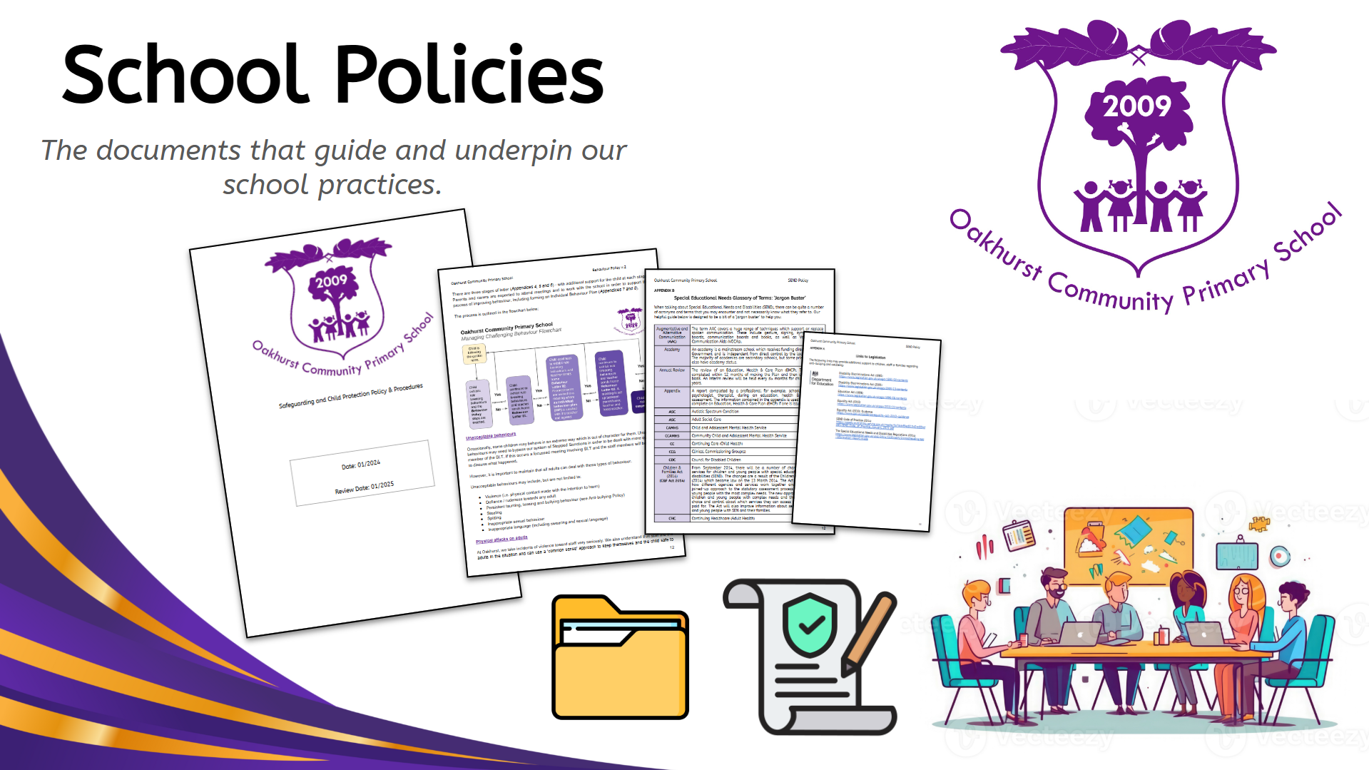 At Oakhurst Community Primary School, our practices are informed by a series of policies that you can find here.